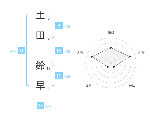 土田 鈴早さんを姓名の画数から五運を鑑定