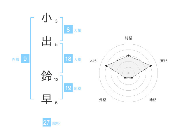 小出 鈴早さんの総格は27画の3点!
