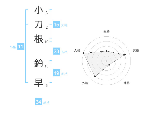 小刀根 鈴早さんを姓名の画数から五運を鑑定