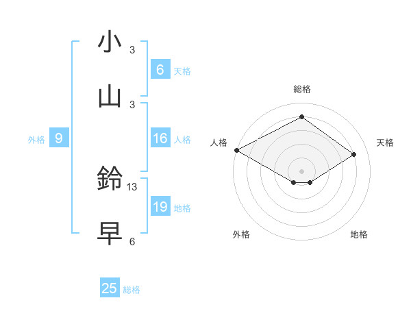 小山 鈴早さんを姓名の画数から五運を鑑定