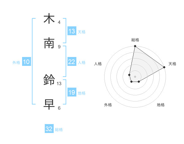 木南 鈴早さんを姓名の画数から五運を鑑定