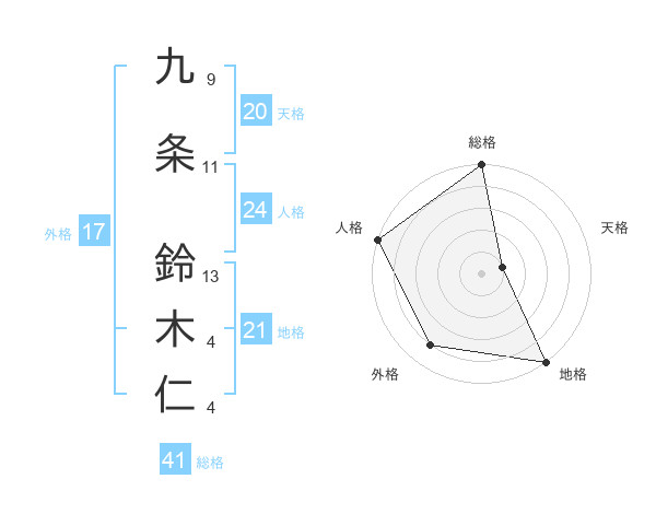 九条 鈴木仁さんを姓名の画数から五運を鑑定