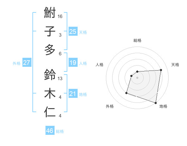 鮒子多 鈴木仁さんの天格は25画の4点!
