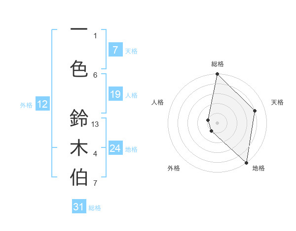 一色 鈴木伯さんを姓名の画数から五運を鑑定