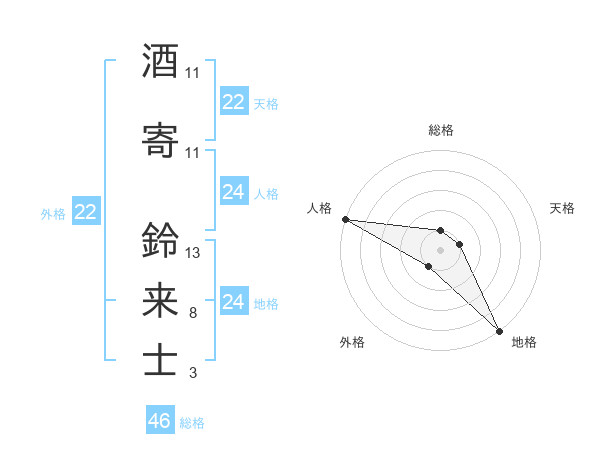 酒寄 鈴来士さんを姓名の画数から五運を鑑定