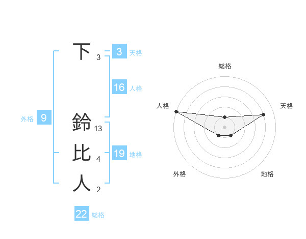 下 鈴比人さんを姓名の画数から五運を鑑定
