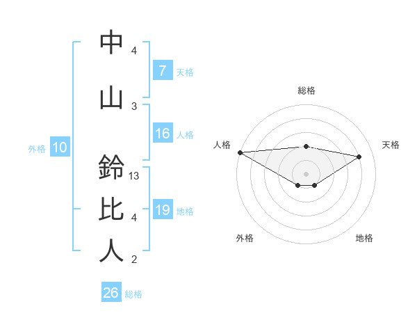 中山 鈴比人さんを姓名の画数から五運を鑑定
