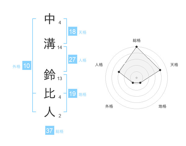 中溝 鈴比人さんを姓名の画数から五運を鑑定
