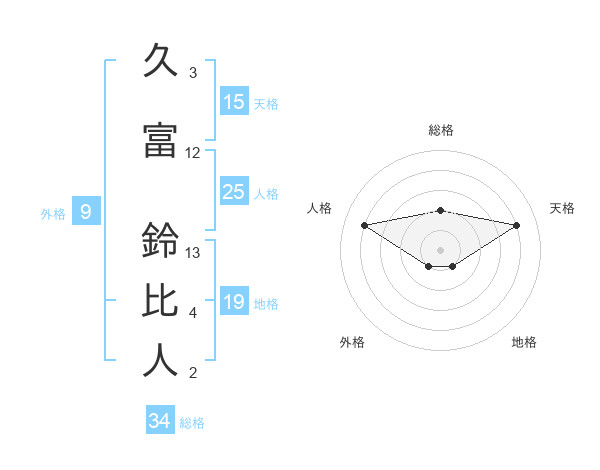 久富 鈴比人さんを姓名の画数から五運を鑑定