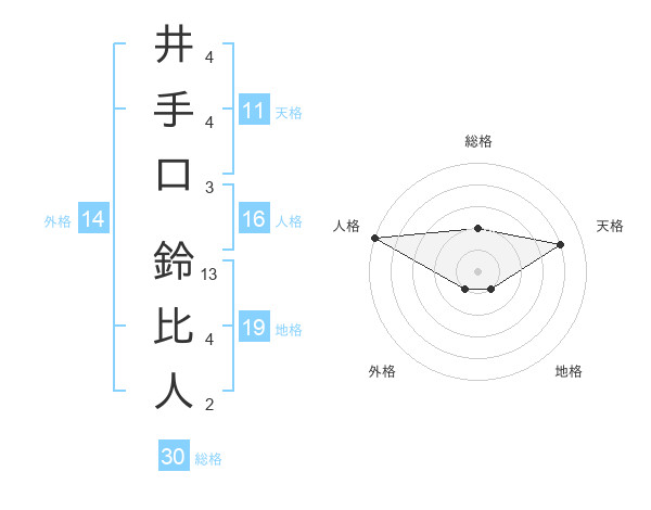 井手口 鈴比人さんを姓名の画数から五運を鑑定