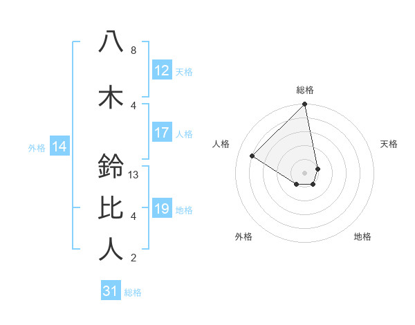 八木 鈴比人さんの総格は31画の5点!