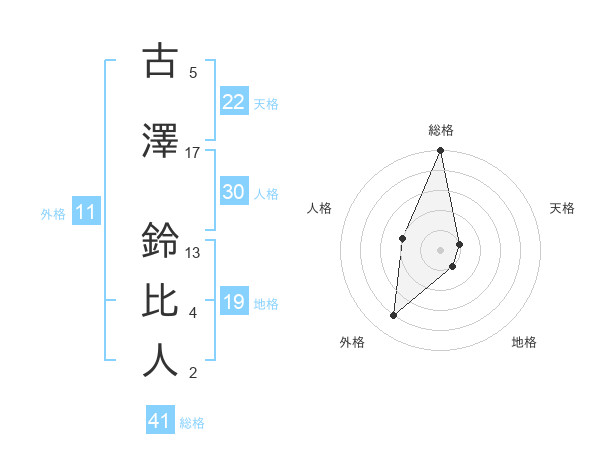 古澤 鈴比人さんを姓名の画数から五運を鑑定
