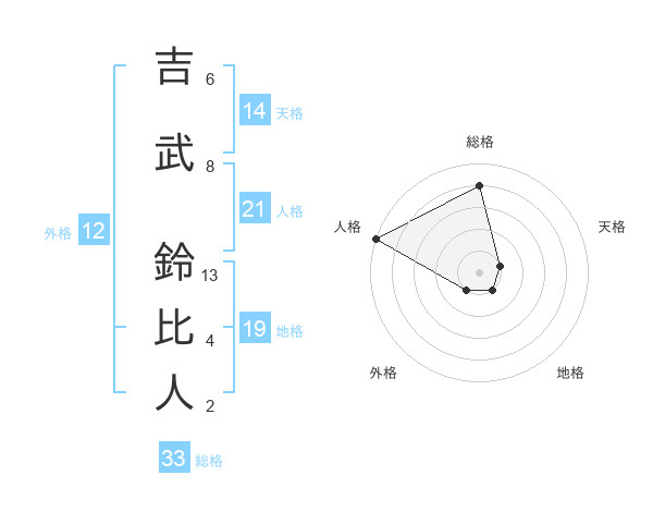 吉武 鈴比人さんの総格は33画の4点!