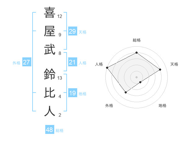 喜屋武 鈴比人さんの天格は29画の4点!