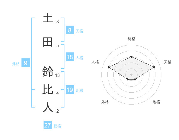 土田 鈴比人さんの総格は27画の3点!