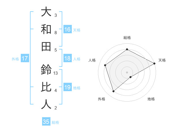 大和田 鈴比人さんを姓名の画数から五運を鑑定