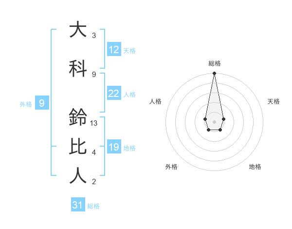 大科 鈴比人さんを姓名の画数から五運を鑑定