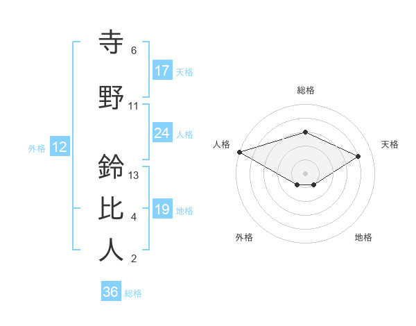 寺野 鈴比人さんを姓名の画数から五運を鑑定