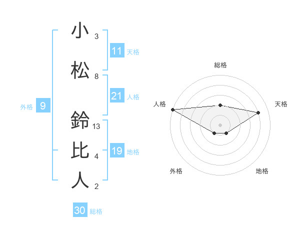 小松 鈴比人さんの人格は21画の5点!