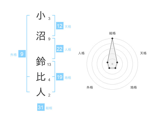 小沼 鈴比人さんを姓名の画数から五運を鑑定