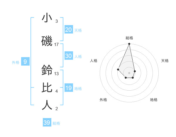 小磯 鈴比人さんの総格は39画の5点!