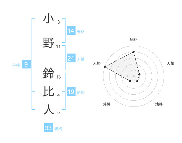 小野 鈴比人さんの総格は33画の4点!