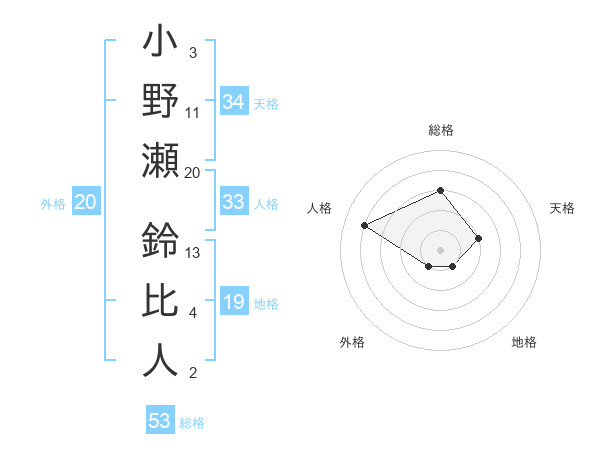 小野瀬 鈴比人さんを姓名の画数から五運を鑑定