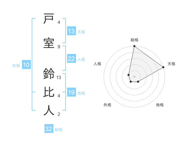 戸室 鈴比人さんの総格は32画の5点!