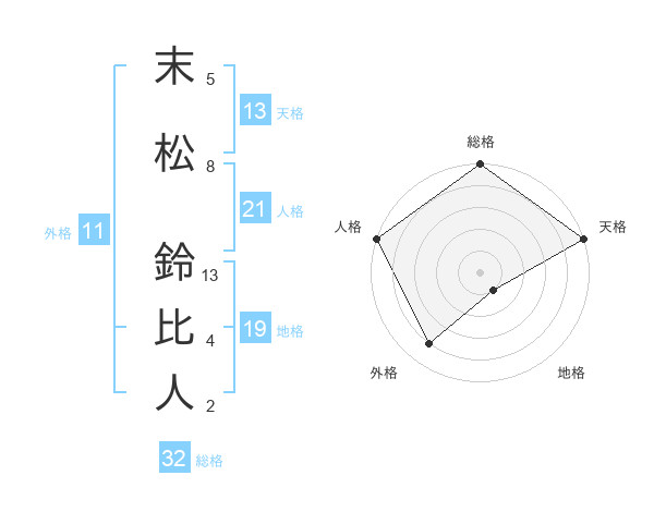 末松 鈴比人さんを姓名の画数から五運を鑑定