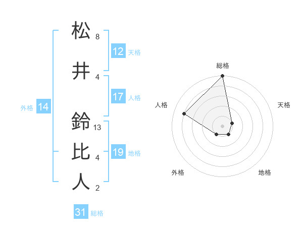 松井 鈴比人さんの総格は31画の5点!