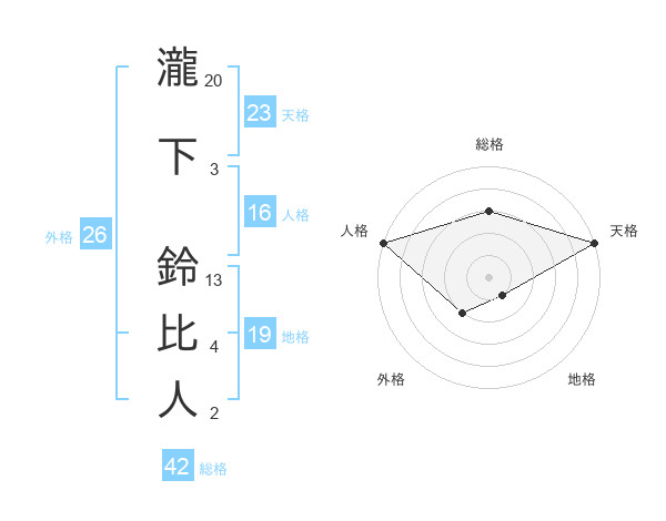 瀧下 鈴比人さんを姓名の画数から五運を鑑定