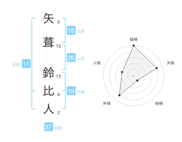 矢葺 鈴比人さんの総格は37画の5点!