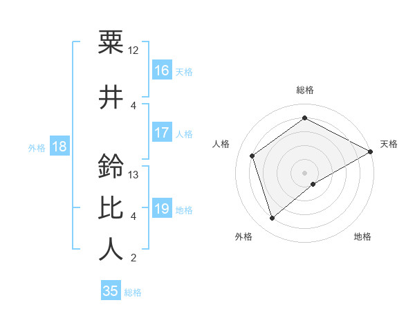 粟井 鈴比人さんを姓名の画数から五運を鑑定