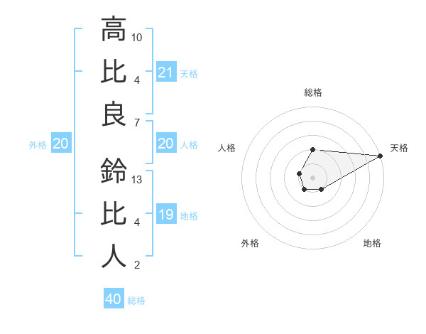 高比良 鈴比人さんの天格は21画の5点!