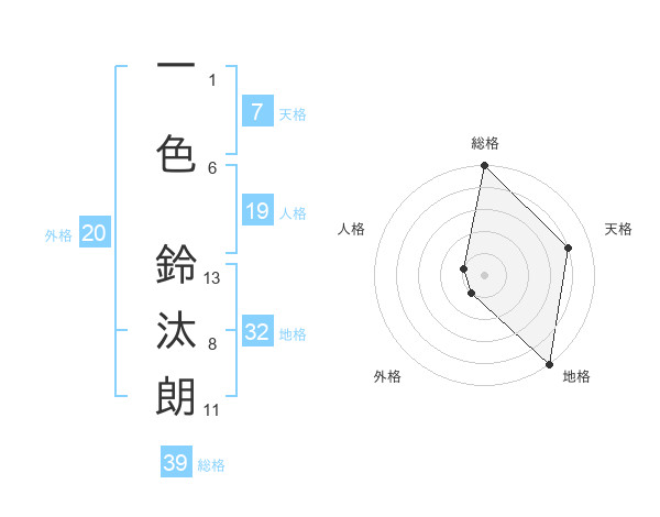 一色 鈴汰朗さんの地格は32画の5点!