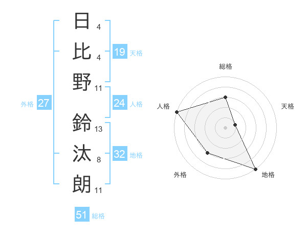 日比野 鈴汰朗さんの総格は51画の3点!