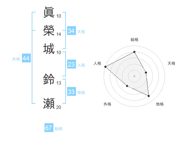 眞榮城 鈴瀬さんの総格は67画の4点!