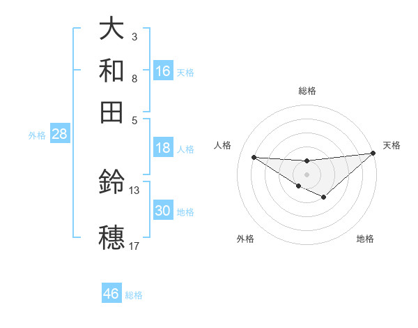 大和田 鈴穗さんを姓名の画数から五運を鑑定