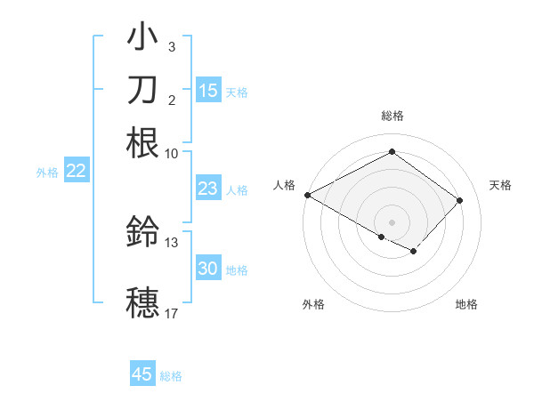 小刀根 鈴穗さんを姓名の画数から五運を鑑定