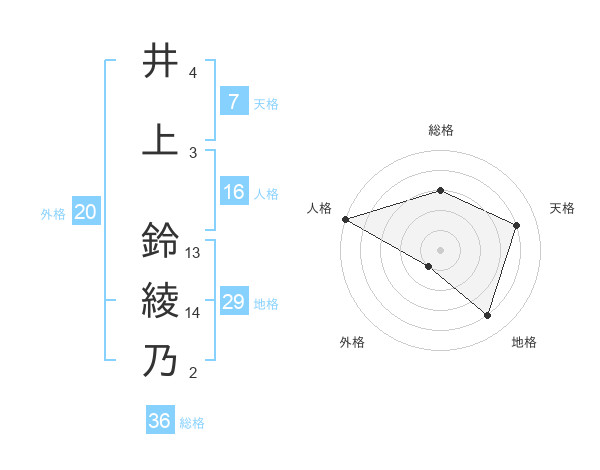 井上 鈴綾乃さんを姓名の画数から五運を鑑定
