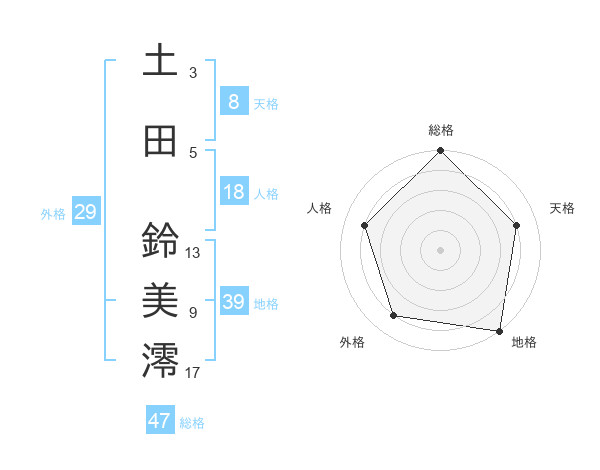 土田 鈴美澪さんの総格は47画の5点
