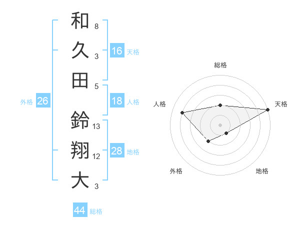 和久田 鈴翔大さんの天格は16画の5点!