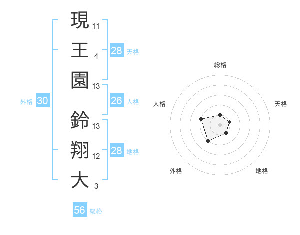 現王園 鈴翔大さんの総格は56画の1点!