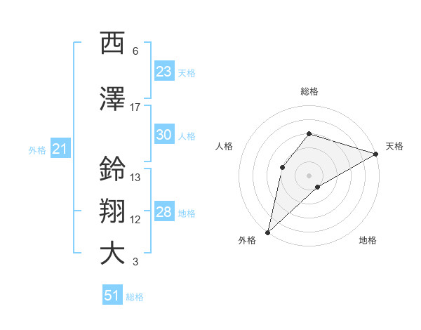 西澤 鈴翔大さんを姓名の画数から五運を鑑定