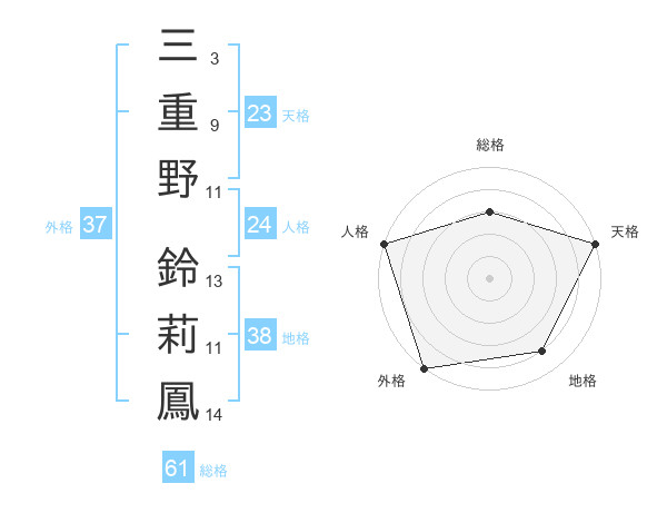 三重野 鈴莉鳳さんを姓名の画数から五運を鑑定