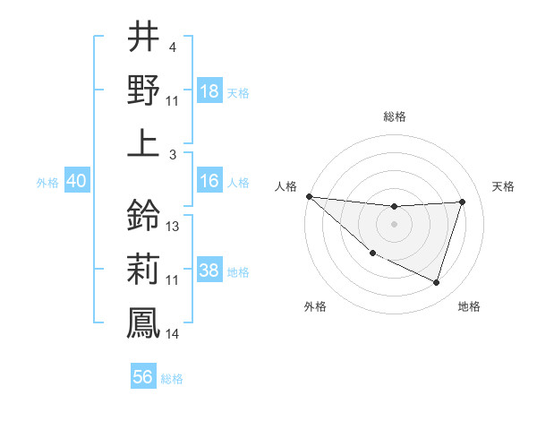 井野上 鈴莉鳳さんの天格は18画の4点!