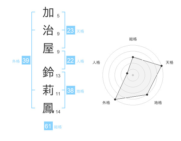 加治屋 鈴莉鳳さんの総格は61画の3点!
