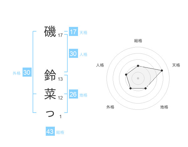 磯 鈴菜っさんの天格は17画の4点!
