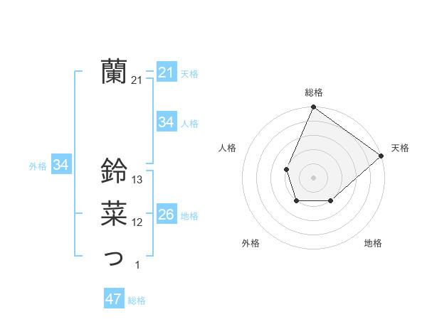 蘭 鈴菜っさんの総格は47画の5点!
