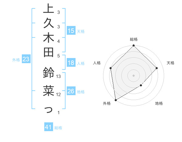 上久木田 鈴菜っさんを姓名の画数から五運を鑑定